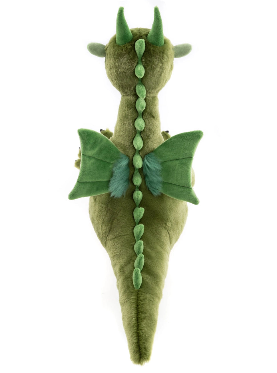 Made from super-soft green plush, Deck features adorable horns, beautifully detailed wings with fluffy accents, and distinctive spine ridges that run along their back. With a generously plump, huggable body and sweet facial features, this dragon is a lovable companion for children and plush enthusiasts alike. And with a non-jointed design and machine washable fabric, Deck is always ready for everyday adventures.