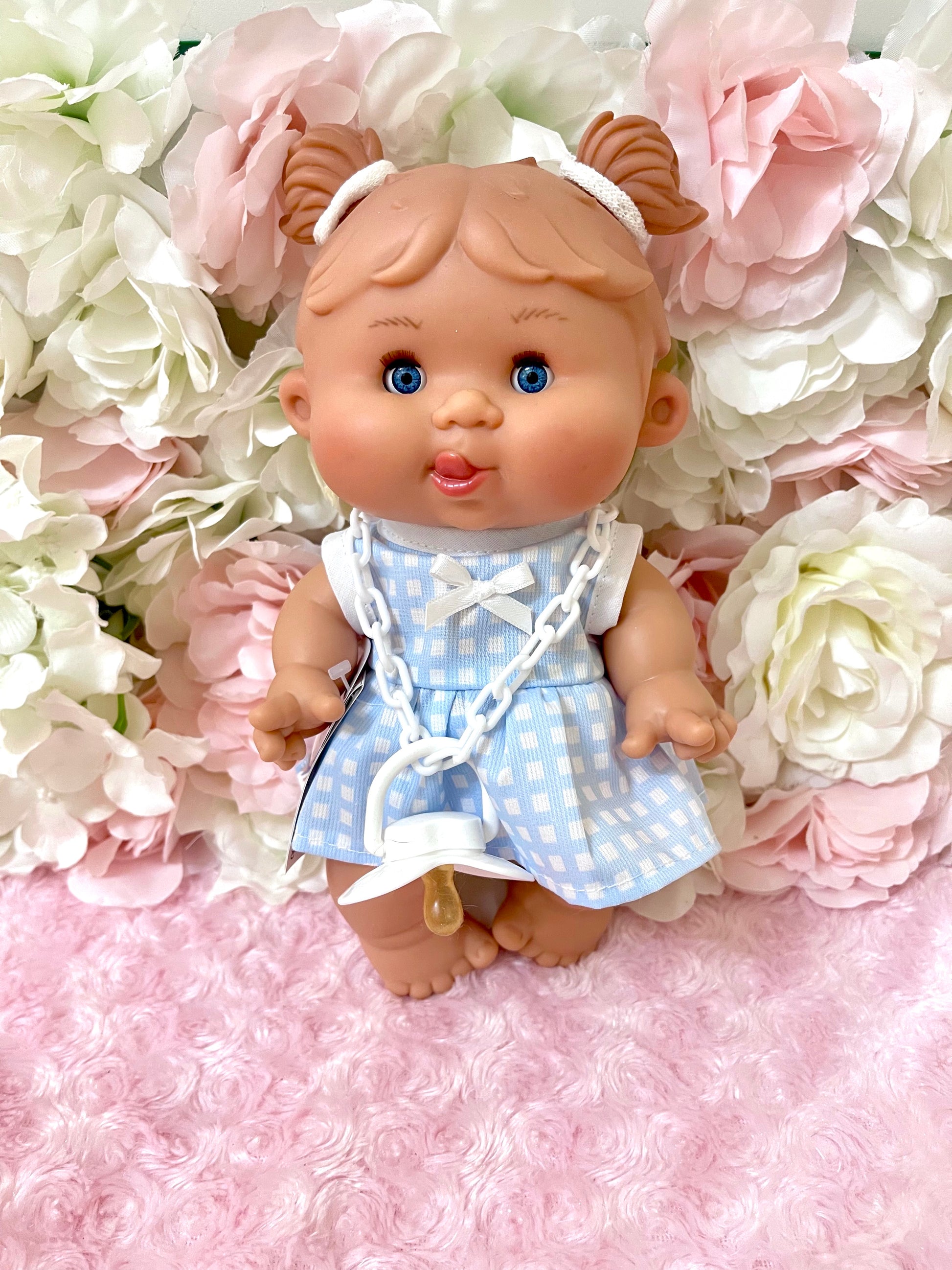 Each doll comes with a sweet matching pacifier and chain, adding an extra touch of realism and play value.