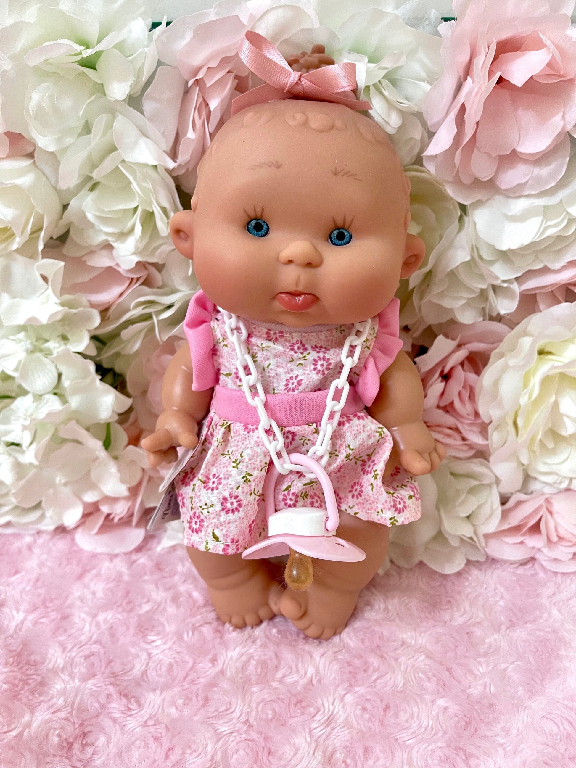 The Pepote Original dolls stand at 26cm and are made entirely of vinyl, making them anatomically correct and safe for bath time. Each doll is designed to be collectible and comes with a pacifier and chain for added charm.